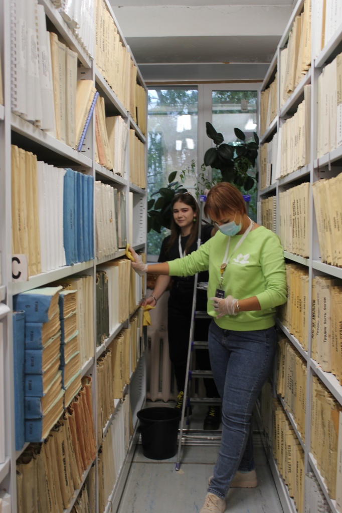 Зав отделом организационно-методической и библиографической деятельности Гелюся Закирова провела экскурсию, в ходе которой волонтёры познакомились с историей библиотеки, её основными направлениями деятельности, проектами, а также со спецификой обслуживания незрячих и слабовидящих. Далее они под руководством сотрудников отдела обслуживания приступили к уборке книжных полок и книг.