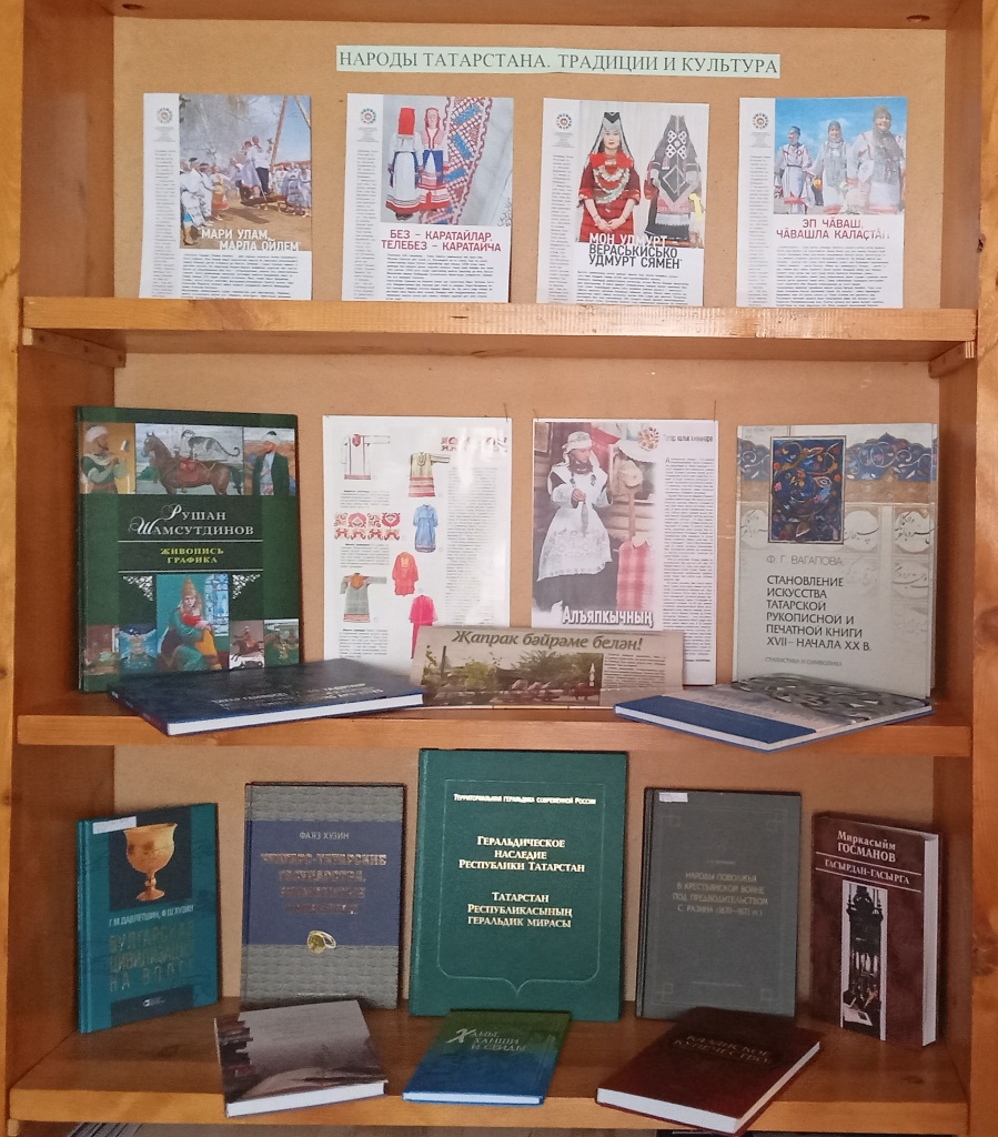 Так же в филиале была подготовлена книжная выставка, приуроченная к этому событию. На данной выставке экспонировалась литература, посвященная культуре и традициям основных народов Татарстана — русских, татар и чувашей, которые так бережно хранят свои национальные наследия с древних времен и по сегодняшний день.