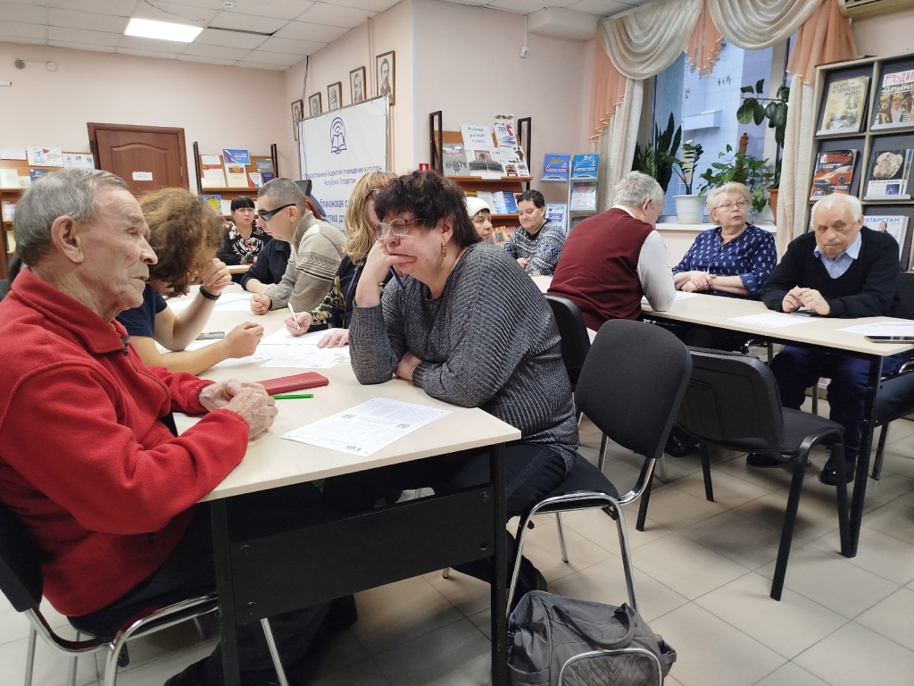 В тёплой и мотивирующей атмосфере участники отвечали на вопросы. На площадке была создана комфортная среда, заполнять бланки и комментировать изображения на слайдах помогали волонтеры из числа сотрудников библиотеки. После завершения диктанта, были организованы обсуждения, на которых участники поделились своими мнениями о вопросах, знаниями и впечатлениями о путешествиях и географических открытиях.